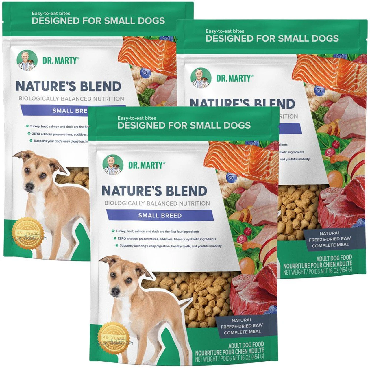 Dr. Marty Nature’s Blend SMALL BREED All-Natural Freeze-Dried Raw Dog Food Bundle (3 X 16 OZ)