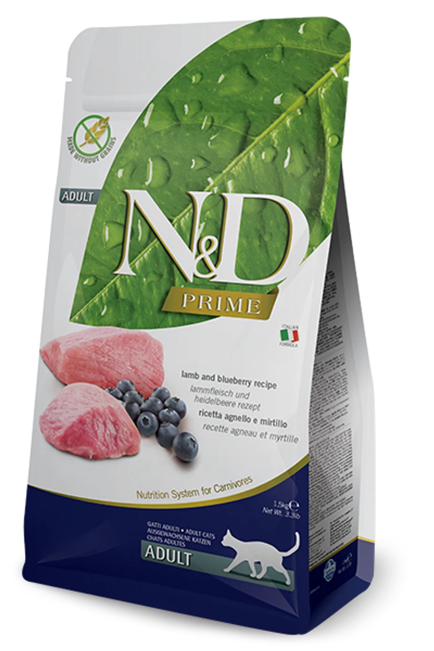 N&D Lamb and blueberry recipe is formulated to meet the nutritional levels established by the AAFCO Cat Food Nutrient Profiles for maintenance.