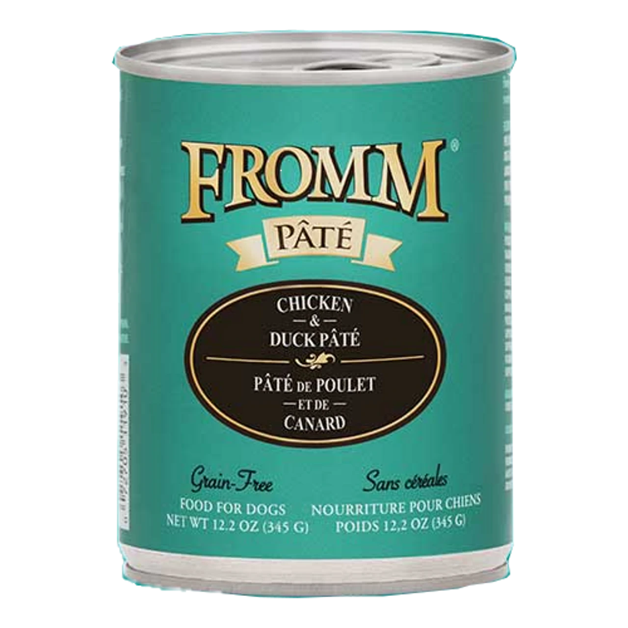 Perfect as a complete meal or accompanying your dog’s favorite dry food, Fromm Four Star Duck and Chicken Pate Canned Dog Food provides balanced and complete nutrition for all breeds and all stages of life. This recipe is made with high quality, finely minced duck and chicken paired with potatoes, carrots, and peas cooked together in a chicken broth. Fromm Four Star Duck and Chicken Pate Canned Dog Food is grain free and made with no artificial colors, flavors, or preservatives.