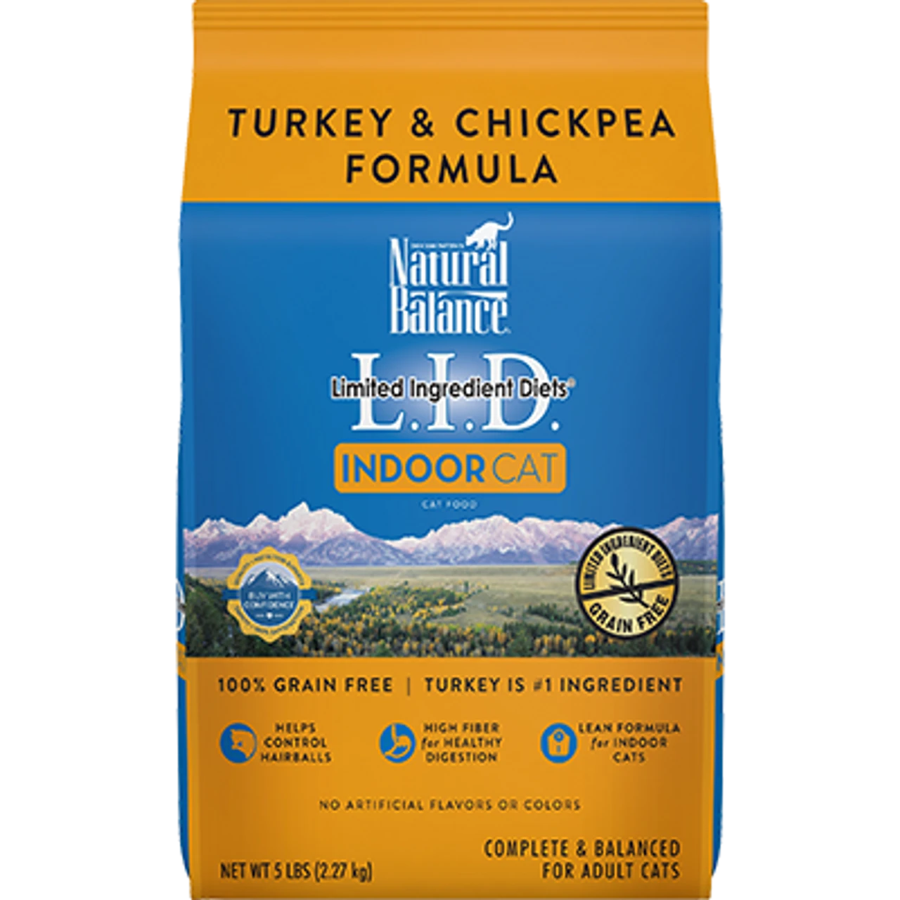 Keep your feline friend healthy, lean and satisfied with Natural Balance® L.I.D. Limited Ingredient Diets® Indoor Formula Dry Cat Food. Featuring premium quality turkey as the #1 ingredient, this grain-free cat food contains prebiotic fiber for healthy digestion and easy litter box clean-up. Created specifically for the needs of adult indoor cats, this limited ingredient cat food supports hairball control and helps maintain healthy skin and a shiny coat.