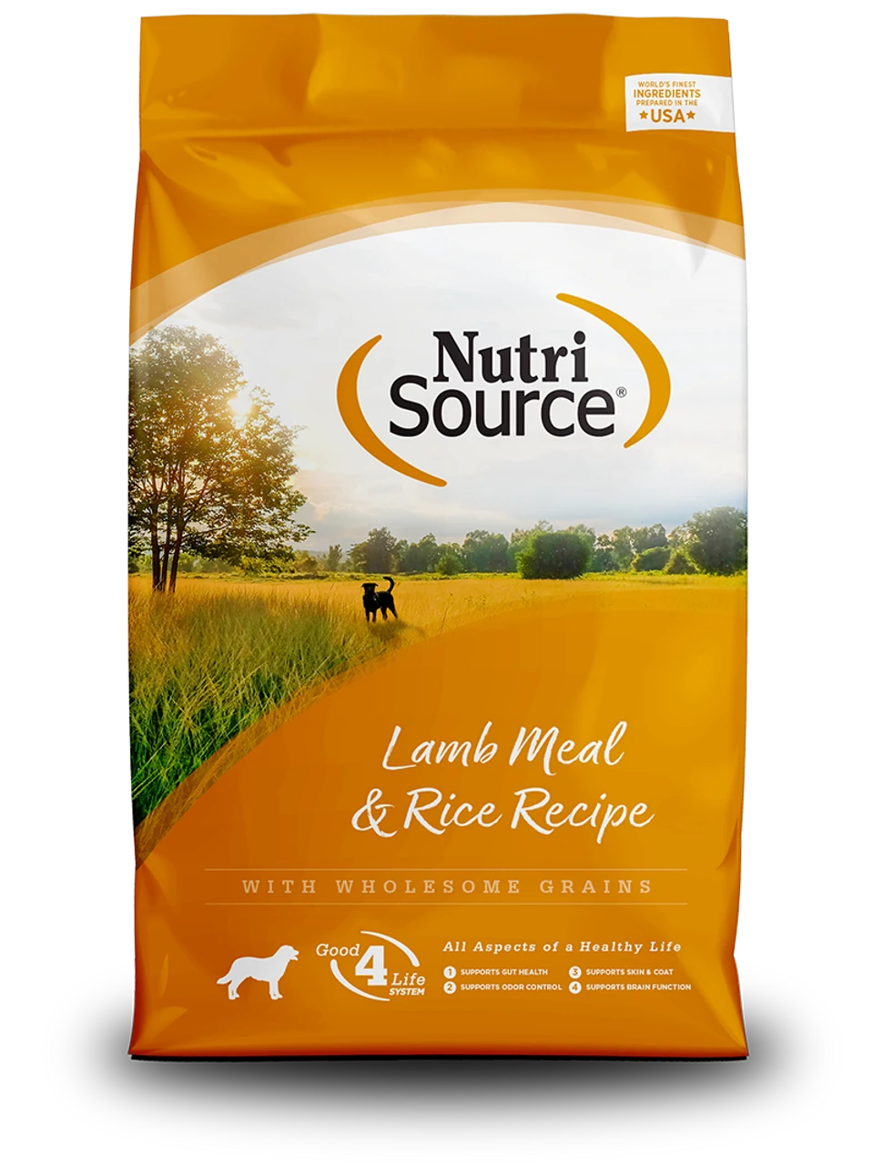NutriSource® Lamb Meal and Rice formula is ideal for all breeds and all life stages. NutriSource® Lamb Meal and Rice formula delivers super premium nutrition in a holistically formulated, easy-to-digest food. Our lamb dog food is often considered the best value in any store across the nation, pound for pound when it comes to cost, quality ingredients and our unsurpassed Alltech supplements (Good4Life) – there is no equal! We combine low-ash Lamb meal, rice, and carefully selected holistic ingredients to promote balanced growth and unparalleled health for your special friend. Health of your beloved pet is our #1 priority and our unmatched use of Good 4 life supplements guarantees the new addition to your family won’t have any runny stool issues and a healthier immune system, we guarantee it. Bio-availability is important to your pets long-term health so we created a highly digestible, nutrient dense morsel with +85% digestibility rating. With NutriSource® you can feed less and get more nutrition – Health begins here!
