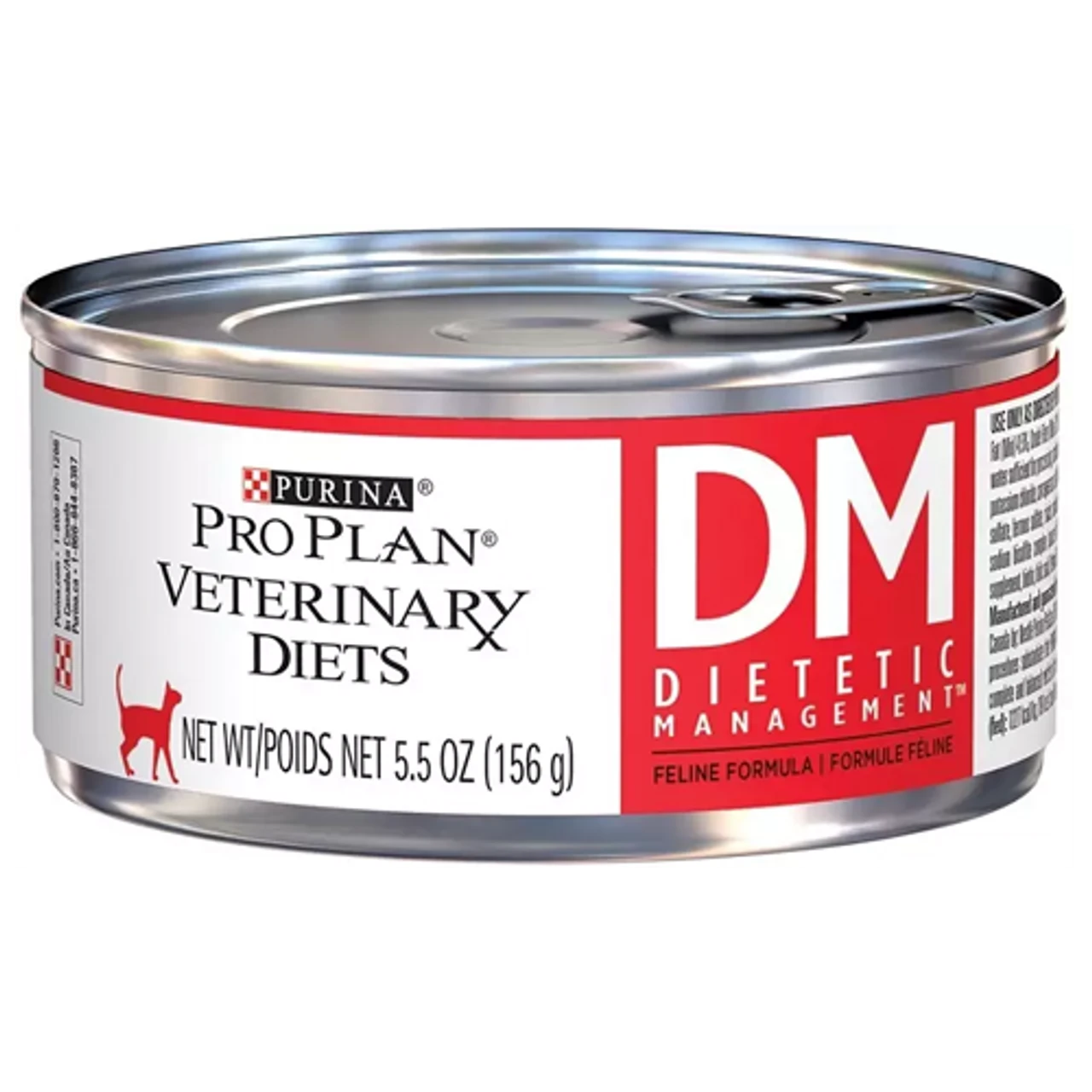 Purina Veterinary Diets DM Dietetic Management Feline Formula works with a cat’s unique metabolism to help manage glucose levels in diabetic cats. DM is formulated for management of cats with diabetes. Findings show that diets high in protein and low in carbohydrates help stabilize glucose levels and help control diabetes.