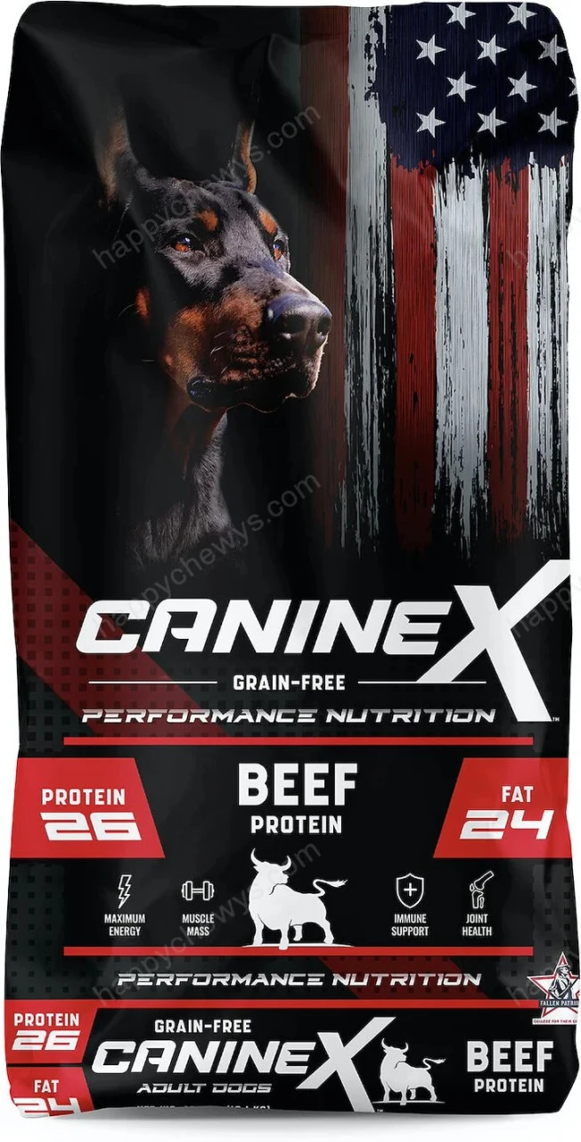 Made without corn, wheat, soy or by-products, CanineX™ is an excellent grain & gluten-free alternative diet for any active dog. This antioxidant recipe is enriched with vitamin E and vitamin C, along with glucosamine and chondroitin sulfate, for proper development and function of bones and joints. Fibers from nutrient-rich vegetables and fruits, such as peas, apples, blueberries, carrots, spinach and cranberries help overall digestion. Fortified with balanced Omega-6 & Omega-3 fatty acids, CanineX™ helps support healthy vision, skin and hair coat.
