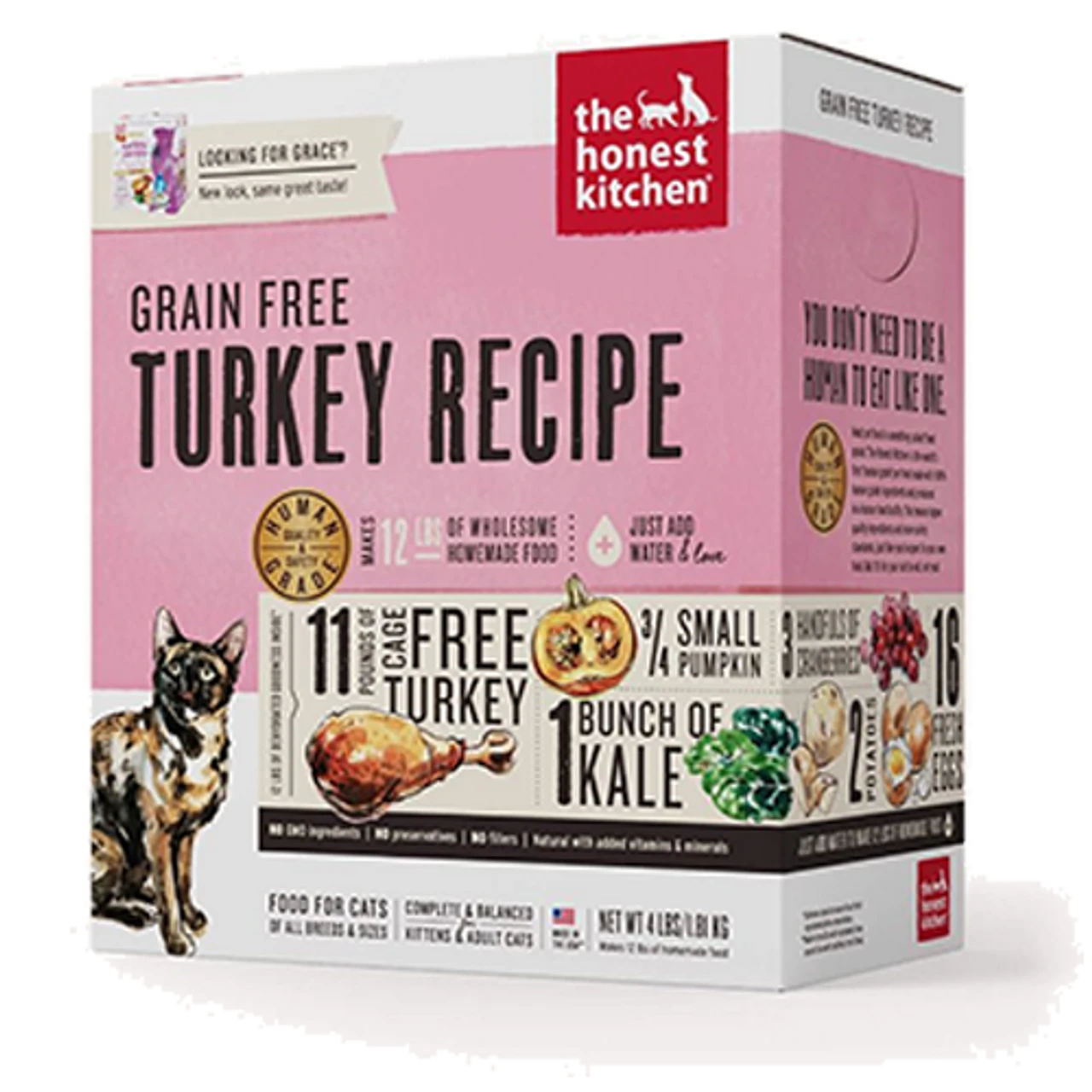 We’re not only 100% honest about our human-grade ingredients, we’re also proud of them. Made with 70% cage-free turkey, this grain-free, high moisture, healthy cat food is a less processed, whole food alternative to ever-mysterious canned food. The high calorie and low carb content of this complete and balanced dish makes it perfect for growing kittens and active adults alike.